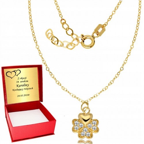 Złoty Łańcuszek 585 Naszyjnik Koniczynka Grawer